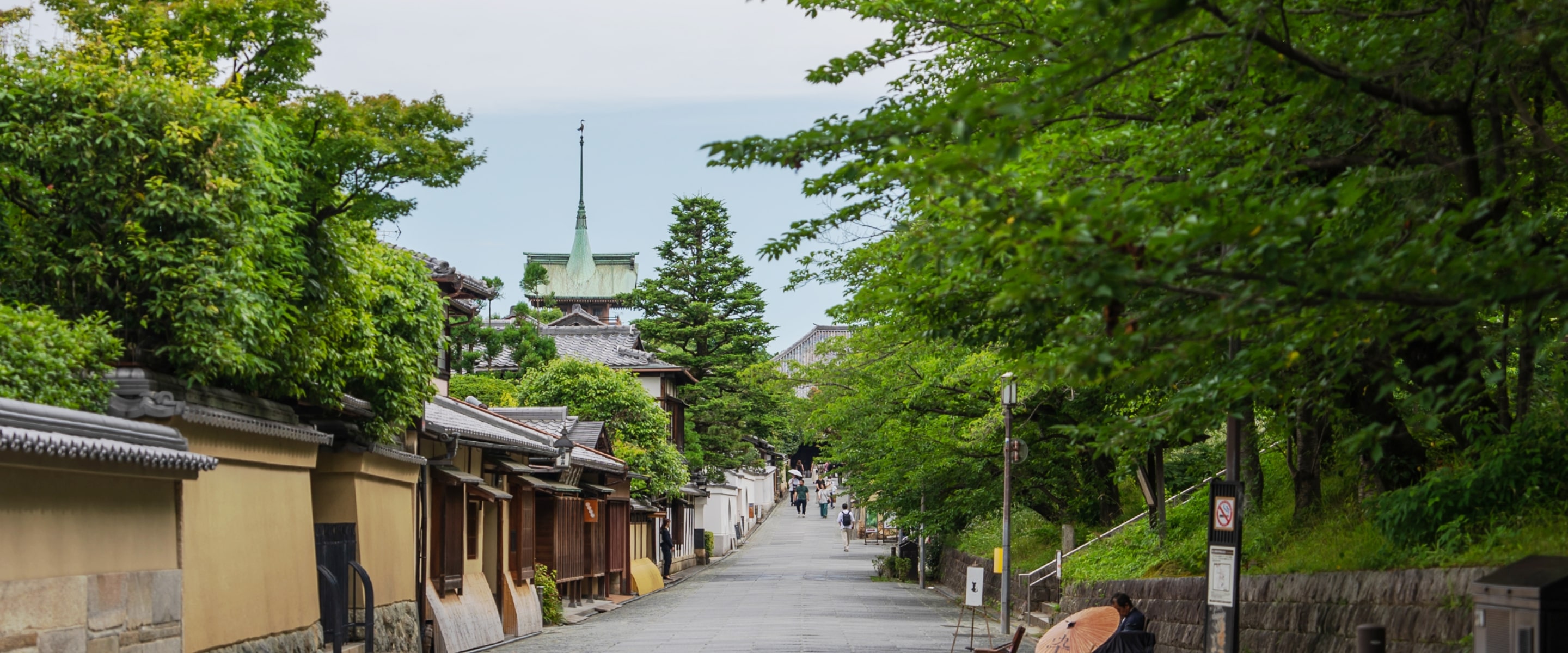 古都の真ん中の民家の並びにとけ込む瓦屋根の家。